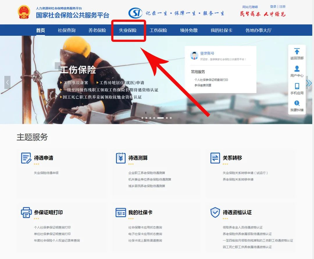 3、登錄“國家社會保險公共服務(wù)平臺”(http://si.12333.gov.cn),點擊【失業(yè)保險】→【失業(yè)保險待遇申領(lǐng)】→【失業(yè)保險金網(wǎng)上申領(lǐng)】辦理。